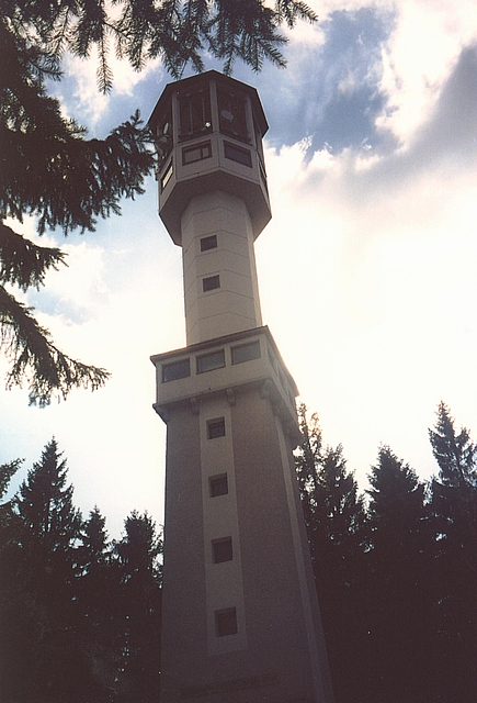 Datum poslední návštěvy: 12.duben 2004 Popis: Rozhledna se nachází necelých 10 km východně od města Kašperské Hory na vrchu Javorník (1086 m). Javorník byl oblíbeným místem spisovatele Karla Klostermanna, který se stal otcem myšlenky postavit zde rozhlednu. Pro svůj nápad získal několik svých přátel a členů KČT, kteří se dne 26. července 1914 sešli na vrcholu, aby zde byl položen základní kámen rozhledny. Jenže v předvečer byla vyhlášena mobilizace, a tak ke stavbě nedošlo. V meziválečném období se myšlenky ujala Šumavská župa KČST, shromáždila finance a v červnu 1938 se začalo stavět. Za dva měsíce byla rozhledna otevřena. Původní plán dřevěné konstrukce byl zaměněn projektem na čtyřbokou kamennou 25 m vysokou věž. Během války sloužila německé armádě jako protiletecká pozorovatelna. Po válce byla opět zpřístupněna, ale časem ji začaly přerůstat okolní stromy. Roku 1997 byla uzavřena. Díky Nadačnímu fondu Karla Klostermanna a zájmu mobilního operátora o komerční využití věže, byla rozhledna v roce 2003 opravena a navýšena. V původní věži bylo odstraněno schodiště a uvnitř byla postavena nová osmiboká věž do výšky 39,5 m, vyhlídková plošina je ve výšce 30 m. Lokace: Jihočeský kraj, okres Prachatice, obec Javorník GPS: 49°08'17.023"N, 13°39'12.618"E Přístup: Z obce Javorník po modré nebo žluté turistické značce; rovněž po naučné stezce z obce Javorník. Turistická známka: Základní č.709 náhled Mapa KČT: Č.69 - Pošumaví-Vimpersko Odkaz: Obec Javorník na Šumavě Naše poznámky: